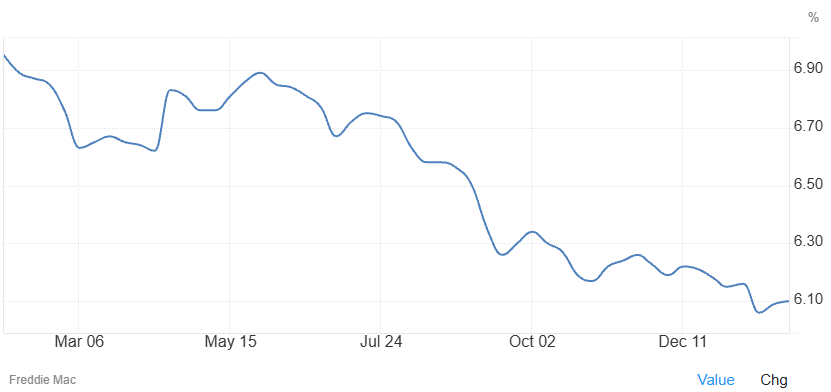 The average rate on a 30-year fixed mortgage rose to 6.1% as of January 29th rising for a second straight week from the lowest level since September 2022 of 6.06%, according to data from Freddie Mac. “Mortgage rates remain near their lowest levels in three years, which is encouraging for potential homebuyers who have waited to enter the market for some time. Lower rates, combined with strong income growth, have led to a steady increase in purchase applications compared to last year. More homeowners refinancing their mortgages are also benefiting from these lower rates, as shown by the rise in refinance applications over the past year,” said Sam Khater, Freddie Mac’s chief economist.