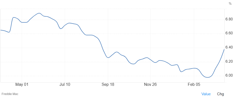 The average rate on a 30-year fixed mortgage rose to 6.38% as of March 26th after trending near its lowest levels of the year in previous weeks according to data from Freddie Mac. The uptick tracked a climb in Treasury yields as investors weighed heightened inflation concerns fueled by the ongoing war in Iran and a pause in interest rate cuts by the Federal Reserve. “The 30-year fixed-rate mortgage averaged 6.38% this week but remains lower than last year when rates averaged 6.65%. The housing market continues to show gradual improvements compared to a year ago amid recent rate volatility with purchase and refinance applications up year-over-year,” said Sam Khater, Freddie Mac’s chief economist.